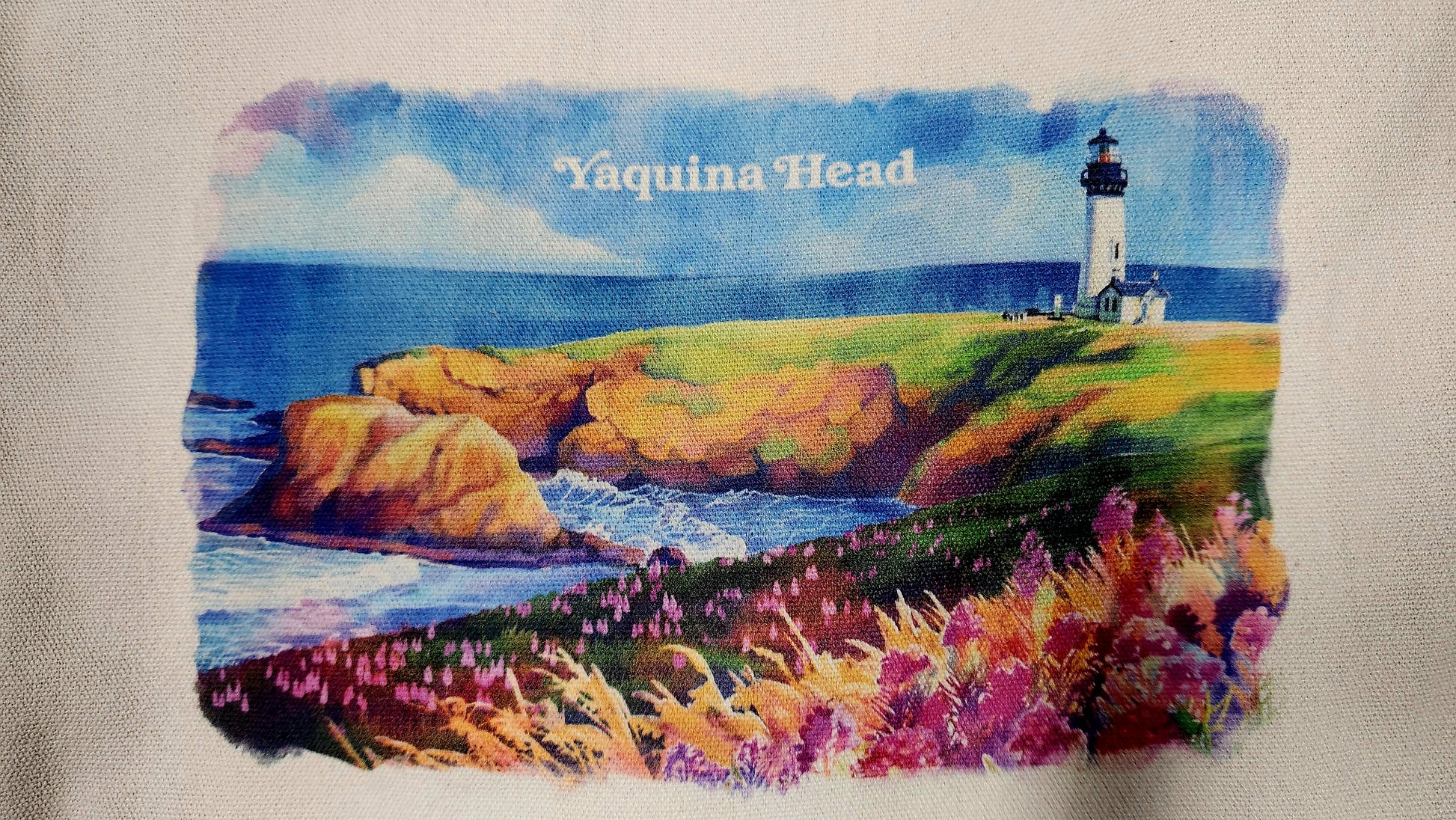 This canvas tote bag features a watercolor design of Yaquina Head, making it perfect for beach trips or everyday use. Made from high-quality canvas, it is durable and versatile. Carry your essentials in style with this functional and stylish tote bag.